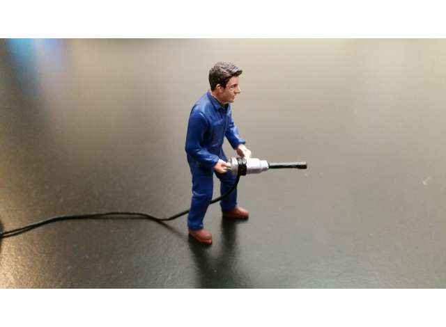 Mechanic fastening wheelnuts With tool.Hand painted detailed diorama figure in overall